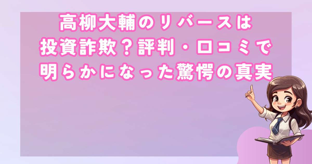 高柳大輔のリバースは投資詐欺なのか?驚きの実態を徹底検証