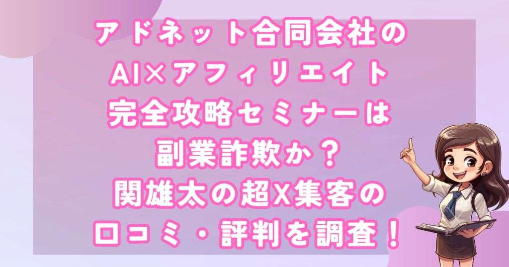 関雄太が提供する「AI×アフィリエイト完全攻略セミナー(超X集客)」について調査しました。