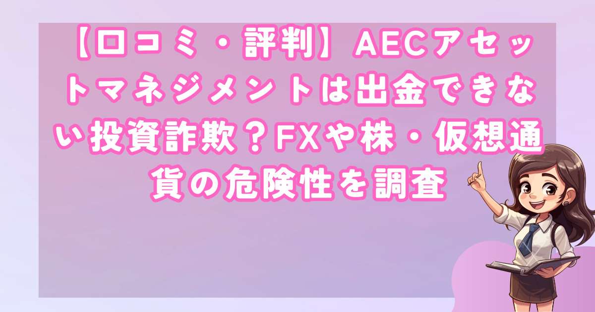 これらの口コミは、AECアセットマネジメントが信頼できる投資プラットフォームではないことを明確に示しており、新たな被害者を生まないための重要な証言となっています。