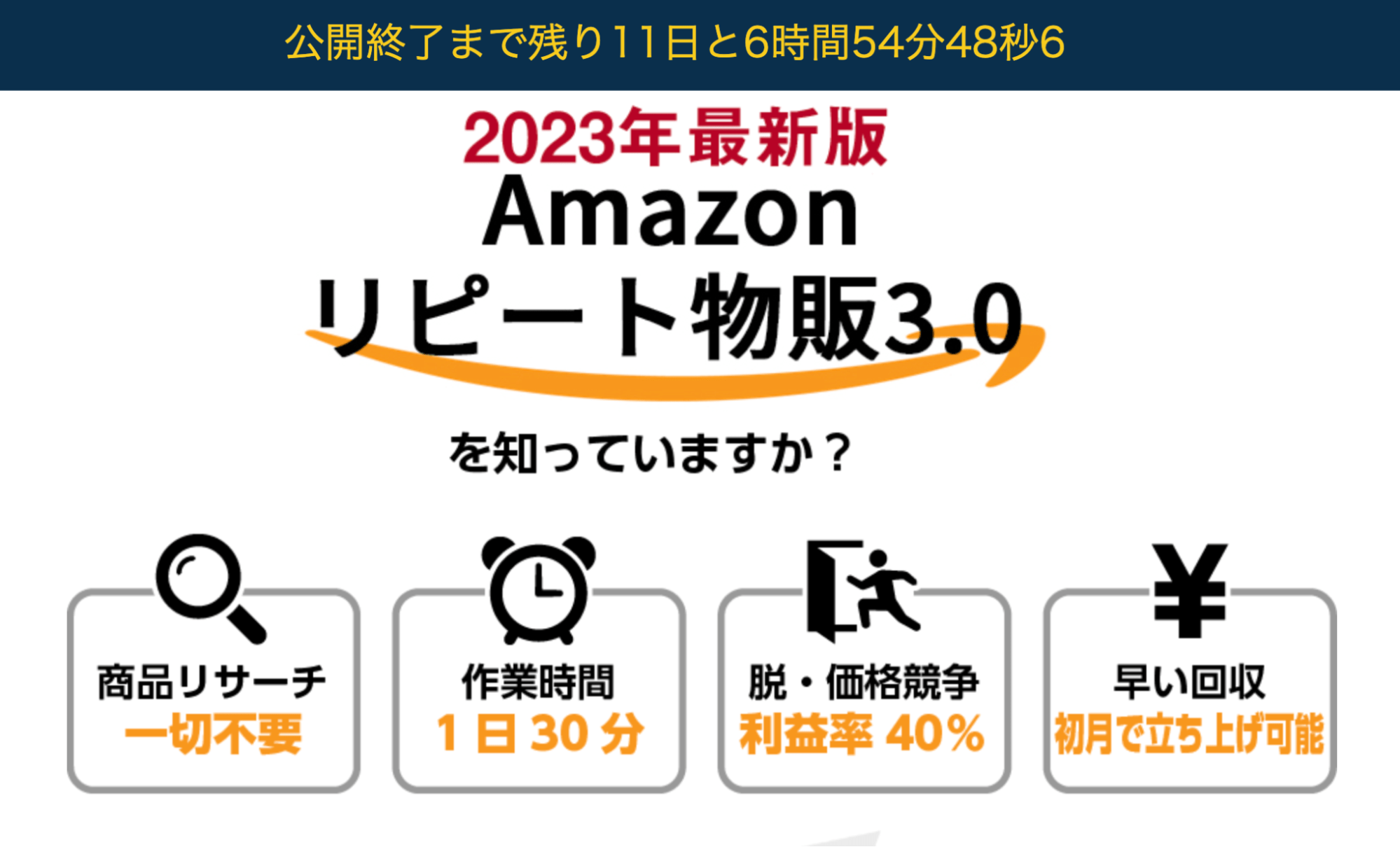 Amazonリピート物販3.0は、1日たったの30分程度の作業時間で月収700万円ほどを目指せるビジネスモデルとして紹介されています。現在期間限定でそのノウハウが公開されているとのことですが、どこか誇大広告のような雰囲気もあります。