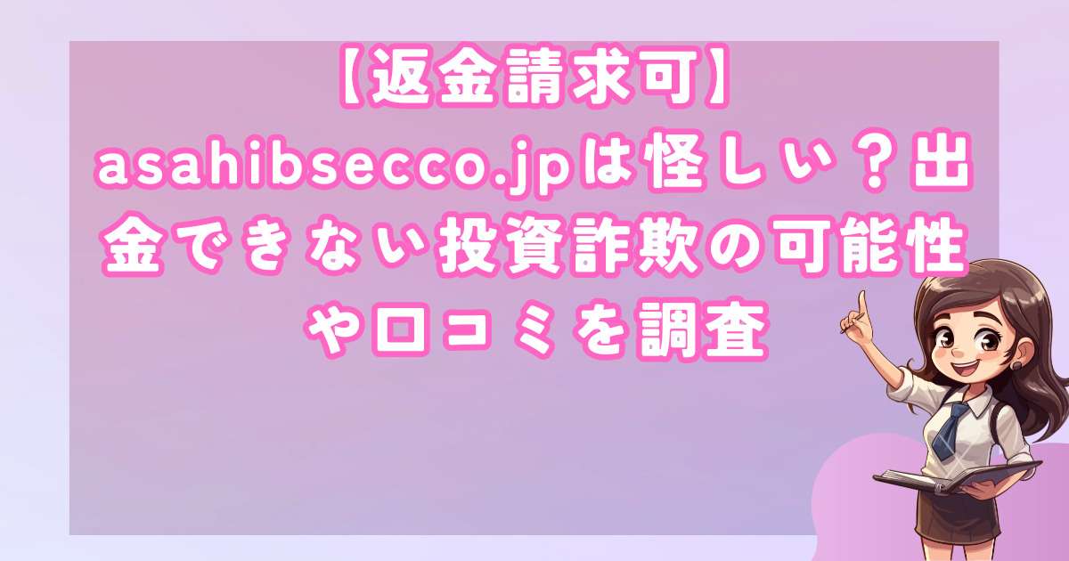 asahibsecco.jpという投資プラットフォームについて、極めて深刻な問題が続出しています。