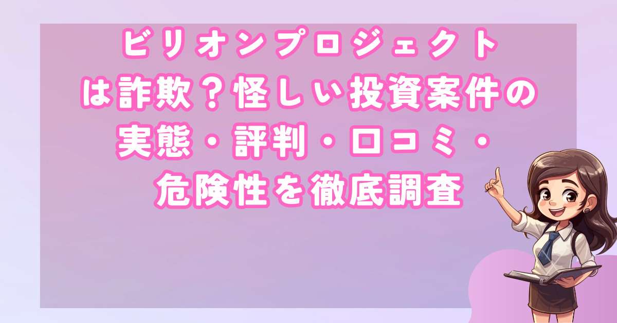 本記事では、ビリオンプロジェクトの実態や副業内容、実際の評判、怪しい口コミ、そしてその危険性まで、ネガティブな視点から徹底的に解説します。
