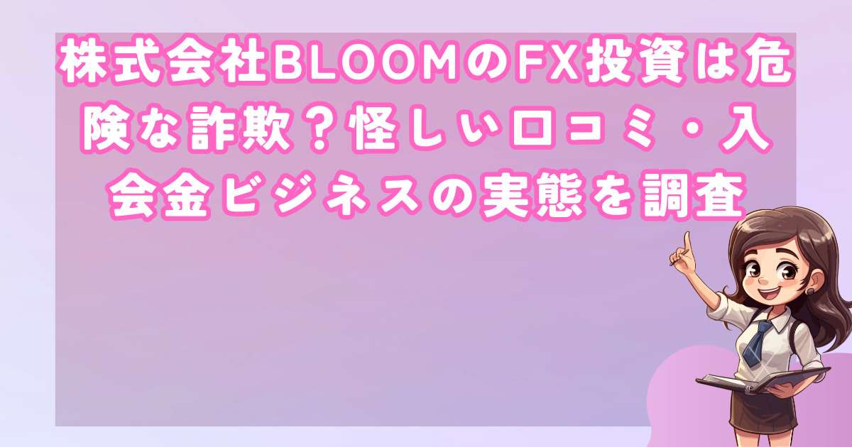 入会金ビジネスの疑いが強く、実際に被害を受けたという声も増えているため、今回は株式会社BLOOMのFX投資の実態について詳しく調べました。