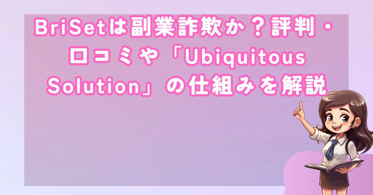BriSetの運営会社である株式会社Ubiquitous Solutionについて調査した結果、過去に複数の怪しい副業案件を提供しており、いずれも参加者から詐欺的だという批判を受けていることが明らかになりました。