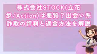 出会い系株式会社STOCK(立花歩/Action)は悪質?出会い系詐欺の評判と返金方法を解説 皆さんこんにちは!河口です! 株式会社STOCKとその運営管理者である立花歩氏が関与しているとされるActionについ... 2025.09.11出会い系