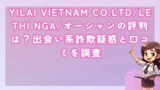出会い系YILAI VIETNAM CO.LTD/LE THI NGA/オーシャンの評判は?出会い系詐欺疑惑と口コミを調査 皆さんこんにちは!河口です! 「オーシャン」は、YILAI VIETNAM CO.LTDが運営し、LE THI NGA... 2025.09.14出会い系