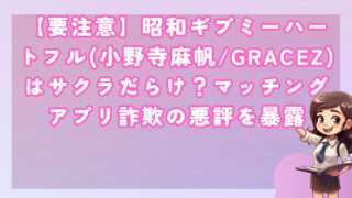 出会い系【要注意】昭和ギブミーハートフル(小野寺麻帆/GRACEZ)はサクラだらけ?マッチングアプリ詐欺の悪評を暴露 皆さんこんにちは!河口です! 近年、出会い系アプリやマッチングアプリを装った詐欺被害が急増していますが、その中でも特に... 2025.09.25出会い系