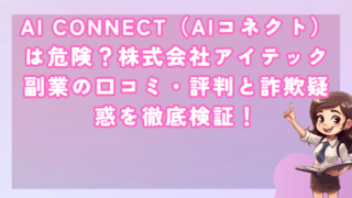 投資AI CONNECT(AIコネクト)は危険?株式会社アイテック副業の口コミ・評判と詐欺疑惑を徹底検証! 皆さんこんにちは!河口です! 近年、AIを活用した副業案件が急増していますが、その中でも特に注意が必要なのが株式会社ア... 2026.02.23投資
