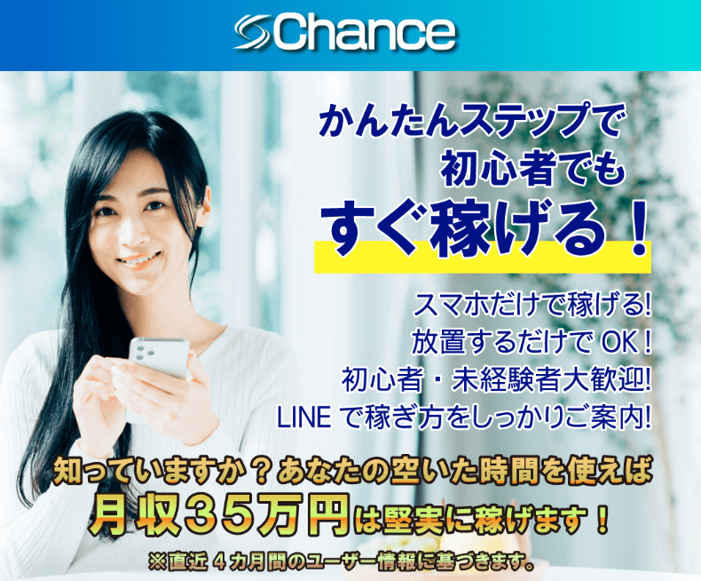実際、ChanceでもLPでは「月収35万円は堅実に稼げる」とアナウンス。