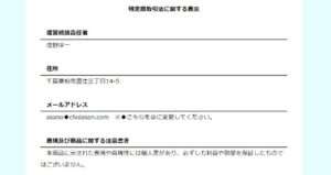 特商法には運営会社の詳細、所在地、商品購入時の留意事項など、消費者が知っておくべき情報が記されています。していることから、疑念を忘れます。