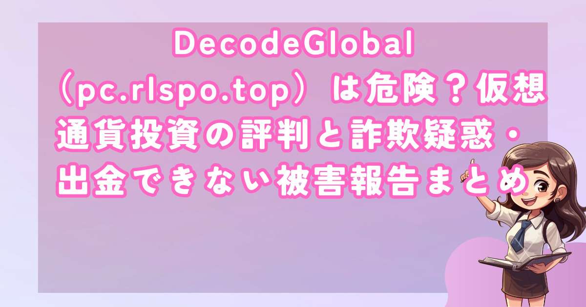 近年、仮想通貨投資を謳った詐欺サイトが急増している中で、特に注意が必要とされているのがDecodeGlobal(pc.rlspo.top)です。