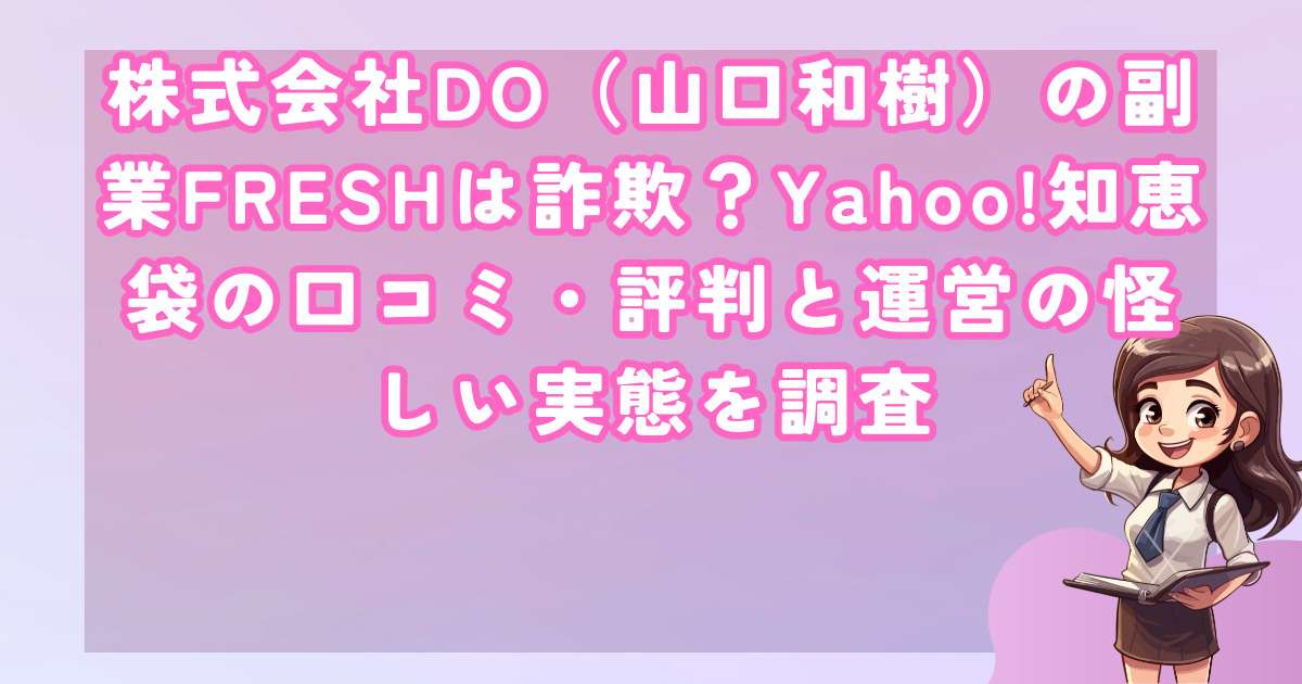 株式会社DOという企業が展開する「FRESH」という副業案件が、インターネット上で注目を集めています。