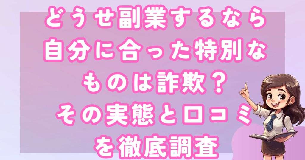 今回のテーマは、どうせ副業するなら自分に合った特別なものでについての調査です。