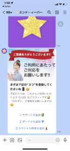 LINE公式アカウントを追加すると、上記画像のような案内がすぐに届きます。