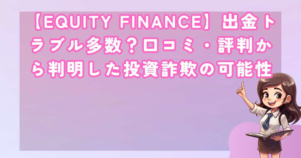 実際にEQUITY FINANCEを利用した投資家からの口コミを調査すると、その内容は非常に憂慮すべきものばかりです。