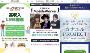 どれも悪質な案件によくある特徴ばかりです。すでにLINEを追加してしまった方は、ブロックしておけば問題はありません。紹介される案件についてもざっくりと確認してみましたが、利用を推奨できるものではありませんでした。本案件も紹介案件も真っ当なオファーではないため、ご注意ください。
