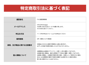 F.A.S(Free Agent Society)には、特商法の表記が用意されています。