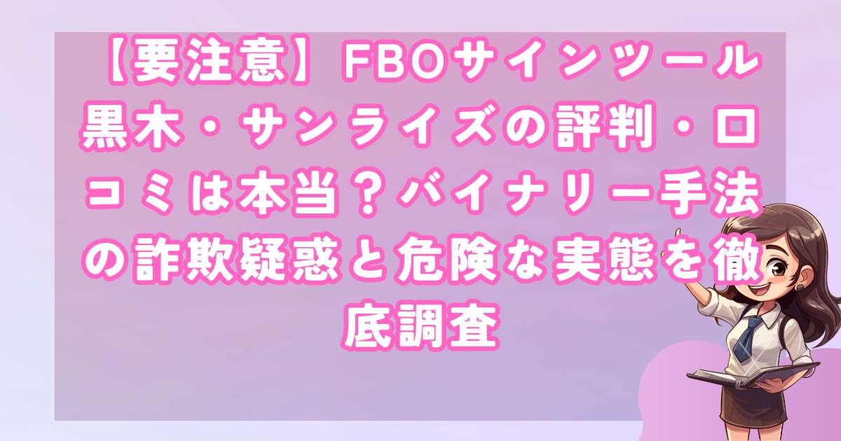 本記事では、FBOサインツールおよび黒木・サンライズに関する評判や口コミの実態について、徹底的に調査した結果をお伝えします。