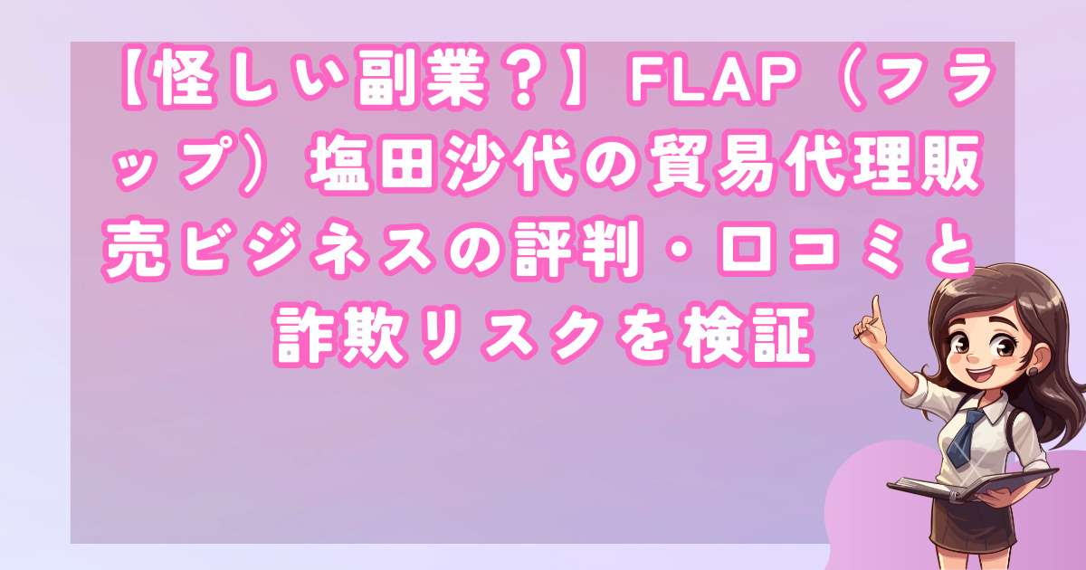 FLAP(フラップ)塩田沙代の貿易代理販売ビジネスは、現実離れした収益モデル、不透明な運営体制、法的問題など、多くの危険要素を含んでいます。