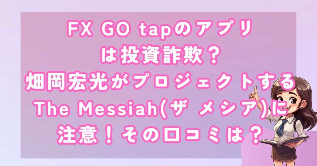 The Messiah(ザ メシア)が提供するFX GO tapについての調査結果をまとめました。このアプリにはいくつかの懸念点があります。
