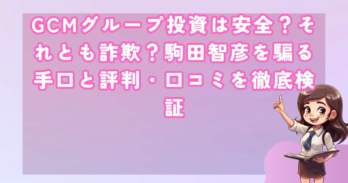 最近SNS広告やLINEグループを通じて注目を集めているGCMグループ投資ですが、徹底的な調査を行った結果、駒田智彦氏の名前を悪用した極めて危険な投資詐欺である可能性が非常に高いことが判明しました。