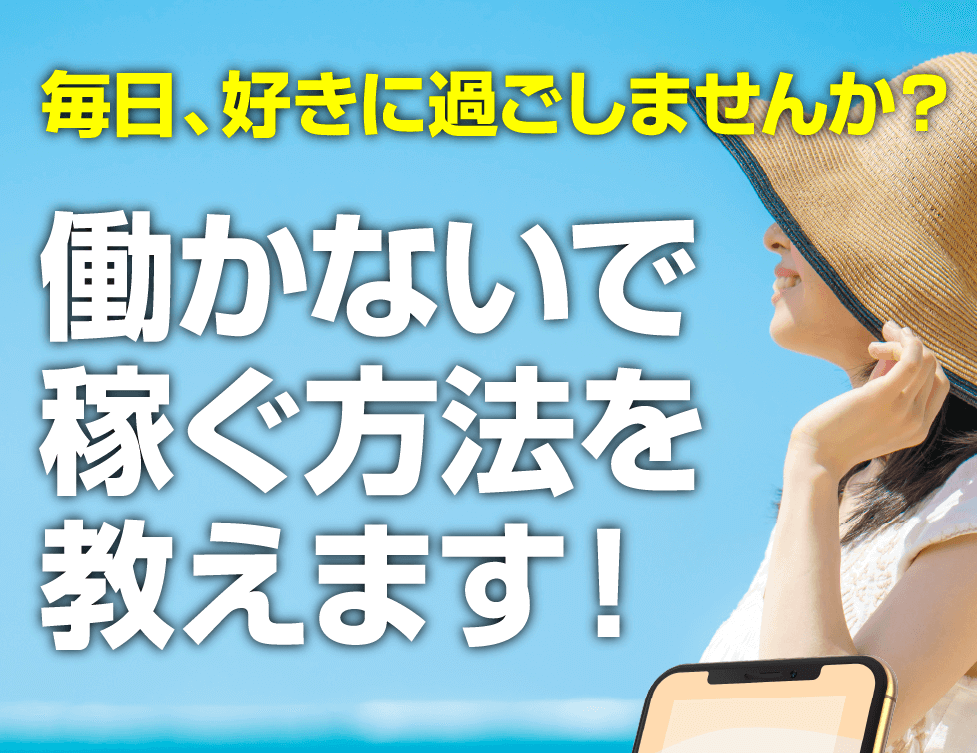 毎日好きに過ごせる、働かないで稼ぐ方法を教えてくれるとのこと。