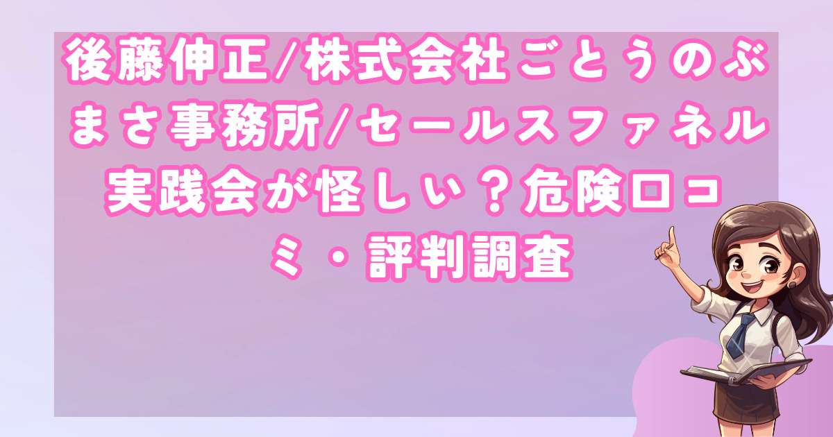 後藤伸正氏が運営する株式会社ごとうのぶまさ事務所のセールスファネル実践会については、多くの否定的な評価や疑問の声が存在します。