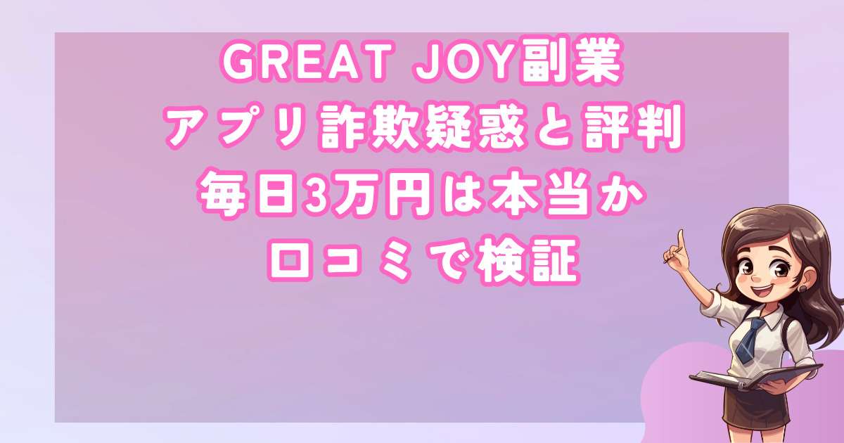 副業や投資で「毎日3万円が自動で稼げる」と謳うGREAT JOY(グレートジョイ)というアプリが話題になっています。