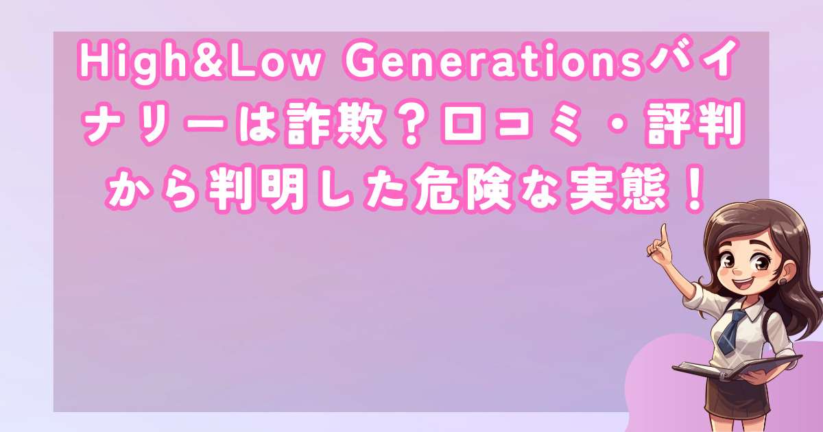 High&Low Generationsバイナリーは、明らかに詐欺的な手口を用いた危険な副業・投資案件です。