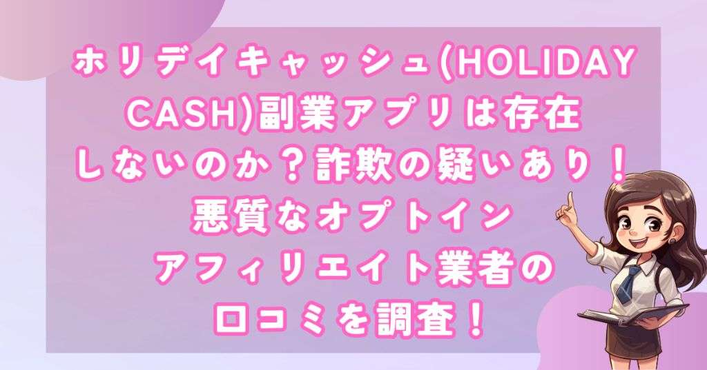 今回はホリデイキャッシュ(HOLIDAY CASH)のいわゆる「無敵アプリ」を徹底調査しました。
