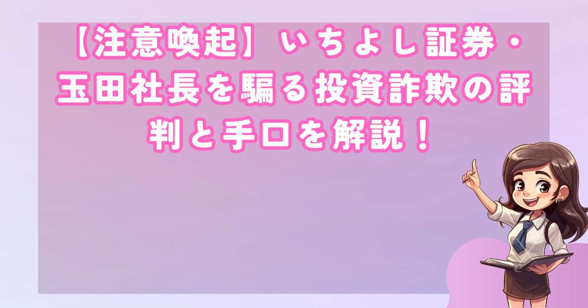 いちよし証券の玉田弘文社長を騙る投資詐欺が横行し、多くの善良な投資家が被害に遭っているのです。