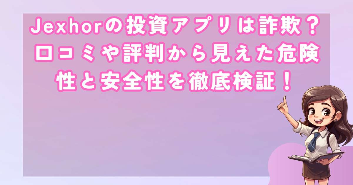 最近、SNSや広告で目にする機会が増えているJexhorという投資アプリですが、その実態について不安を感じている方も多いのではないでしょうか。