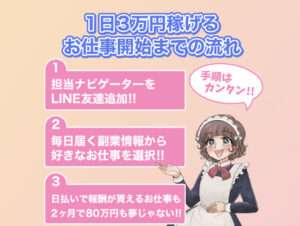 - 日払いで報酬が貰える仕事もあり、2ヶ月で80万円も夢じゃない