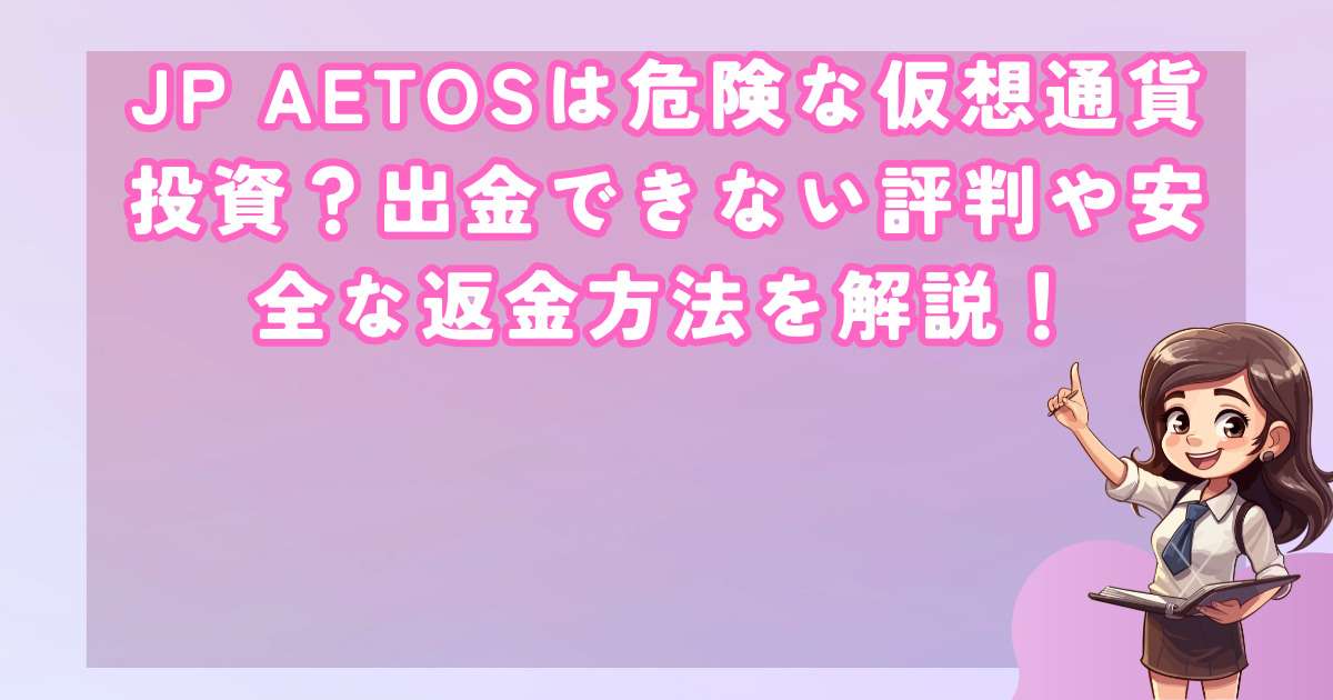 本記事では、JP AETOSの実態や危険性、そして万が一被害に遭ってしまった場合の対処法について詳しく解説します。