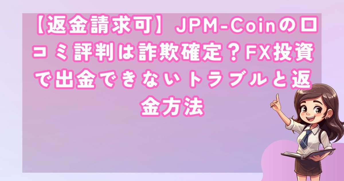インターネット上でFX投資や仮想通貨取引を謳うJPM-Coinに関して、深刻な詐欺疑惑が浮上しています。