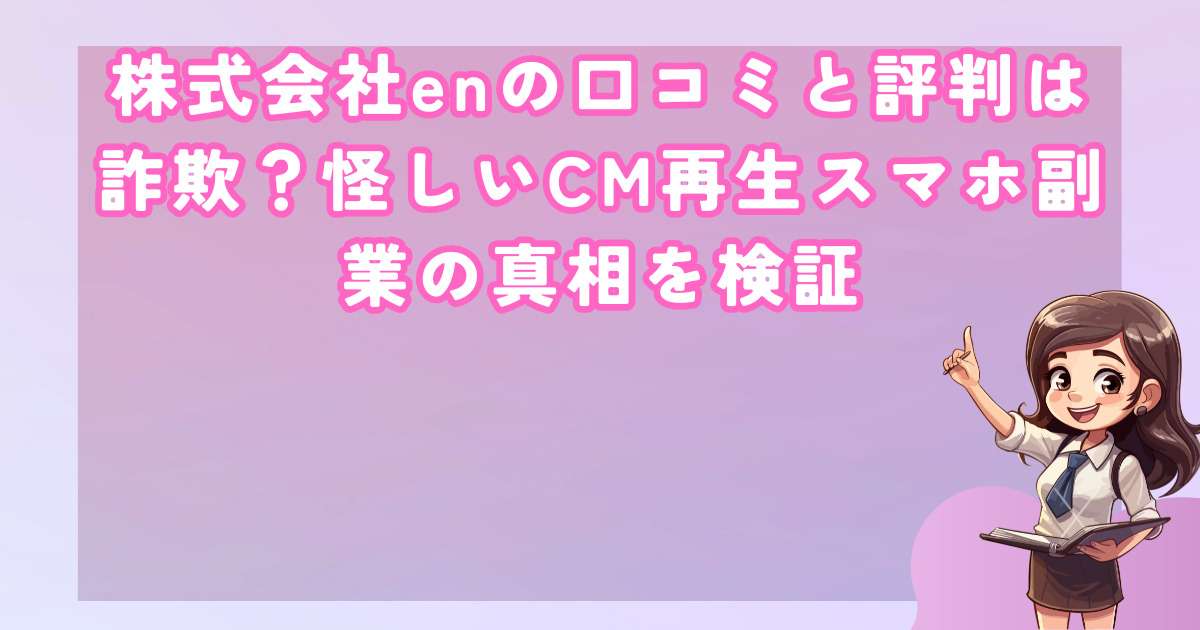 近年、スマホで簡単に稼げると謳う副業案件が急増していますが、その中でも特に危険視されているのが株式会社enが運営するCM再生副業です。