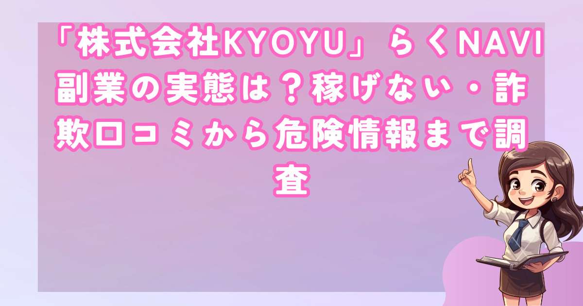 株式会社KYOYUが運営する「らくNAVI副業」の実態について詳しく調査しましたが、その結果は極めて憂慮すべきものでした。