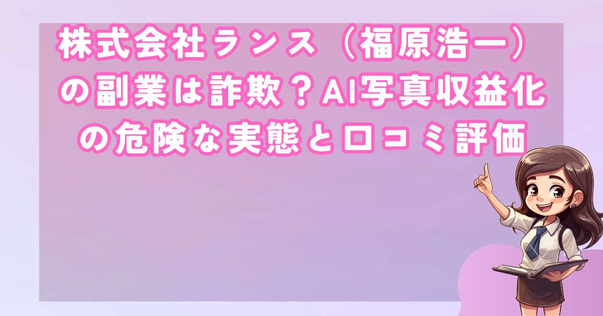 株式会社ランスが福原浩一氏のもとで展開するAI写真収益化ビジネスについて、多くの疑問の声が上がっています。