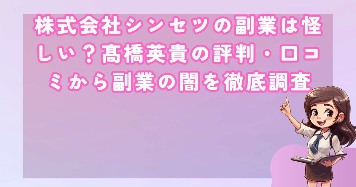 株式会社シンセツが展開する副業ビジネスについて、インターネット上では「詐欺まがい」「怪しい」といった警告の声が相次いでいます。