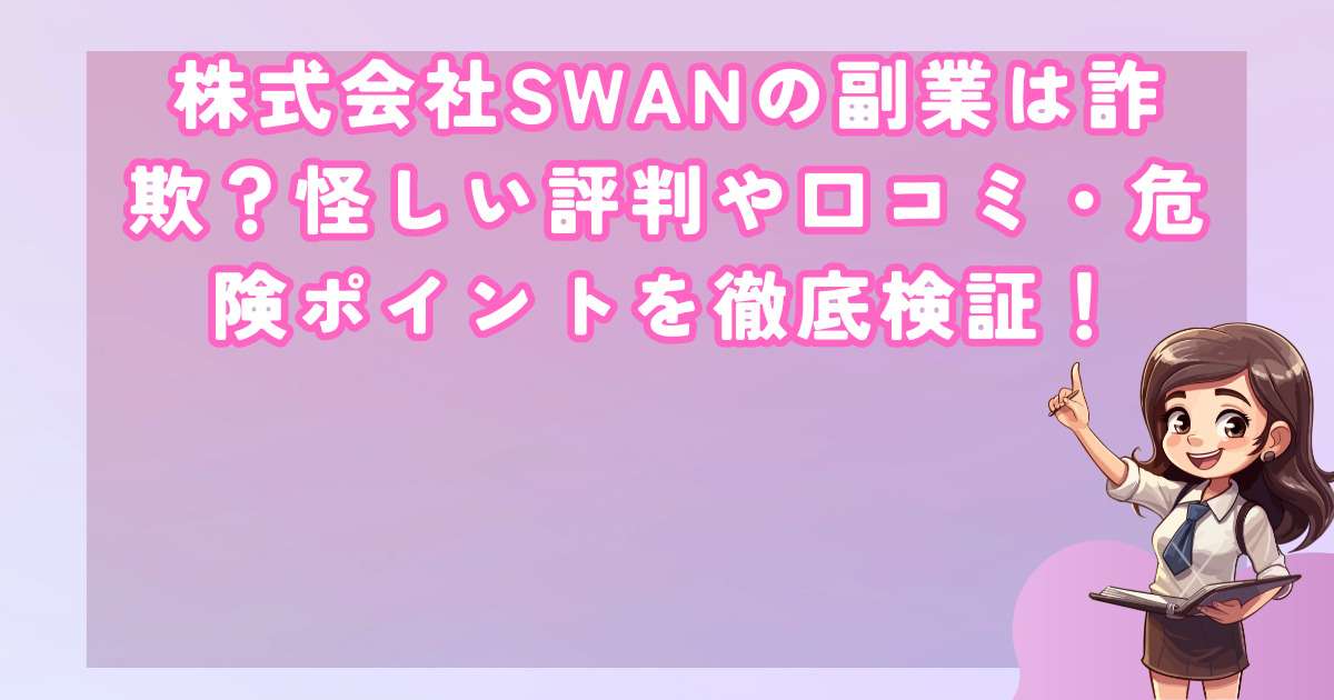 本記事では、株式会社SWANの副業が抱える問題点や危険性について、詳しく解説していきます。