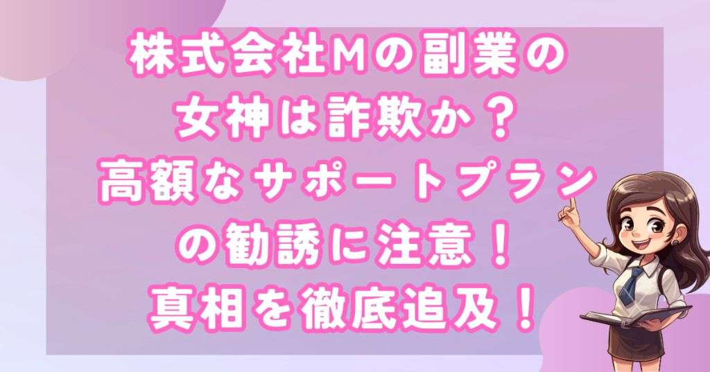 商材の口コミ・ネタバレに関して、株式会社Mの『副業の女神』は無料で稼げると宣伝していますが、実際は高額なサポートプランに誘導される形となります。