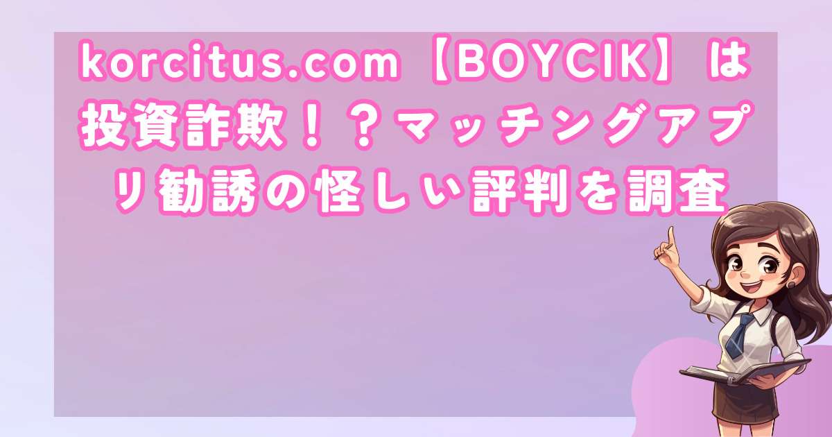 近年、マッチングアプリを悪用した投資詐欺が急激に増加しており、その中でもkorcitus.com【BOYCIK】は特に悪質な事例として注目されています。