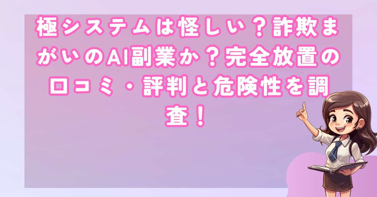 極システムは、AI技術を活用した副業として宣伝されているサービスですが、その実態は非常に不透明で信用できない要素が多数存在します。