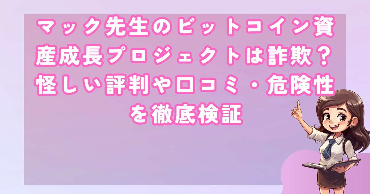 マック先生のビットコイン資産成長プロジェクトについても、その実態や運営者の情報が不透明であり、信頼性に大きな疑問が残ります。