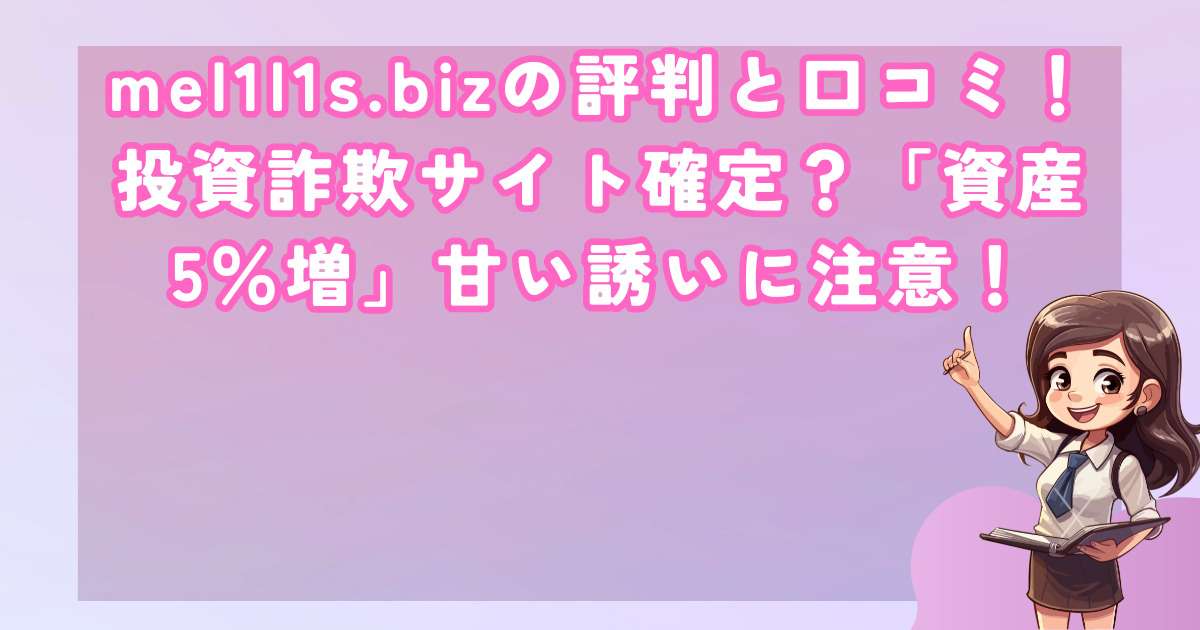 mel1l1s.bizについて詳細な調査を行った結果、極めて深刻な問題を抱えた投資詐欺サイトである疑いが濃厚になっています。