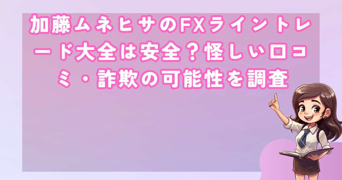 加藤ムネヒサ氏のFXライントレード大全について、その安全性や詐欺の可能性について詳しく調査した結果、数多くの問題点と怪しい要素が発見されました。