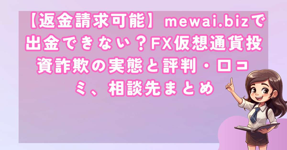 mewai.netという投資プラットフォームをめぐって、利用者からの出金拒否や返金請求の無視といった問題が相次いで報告されています。
