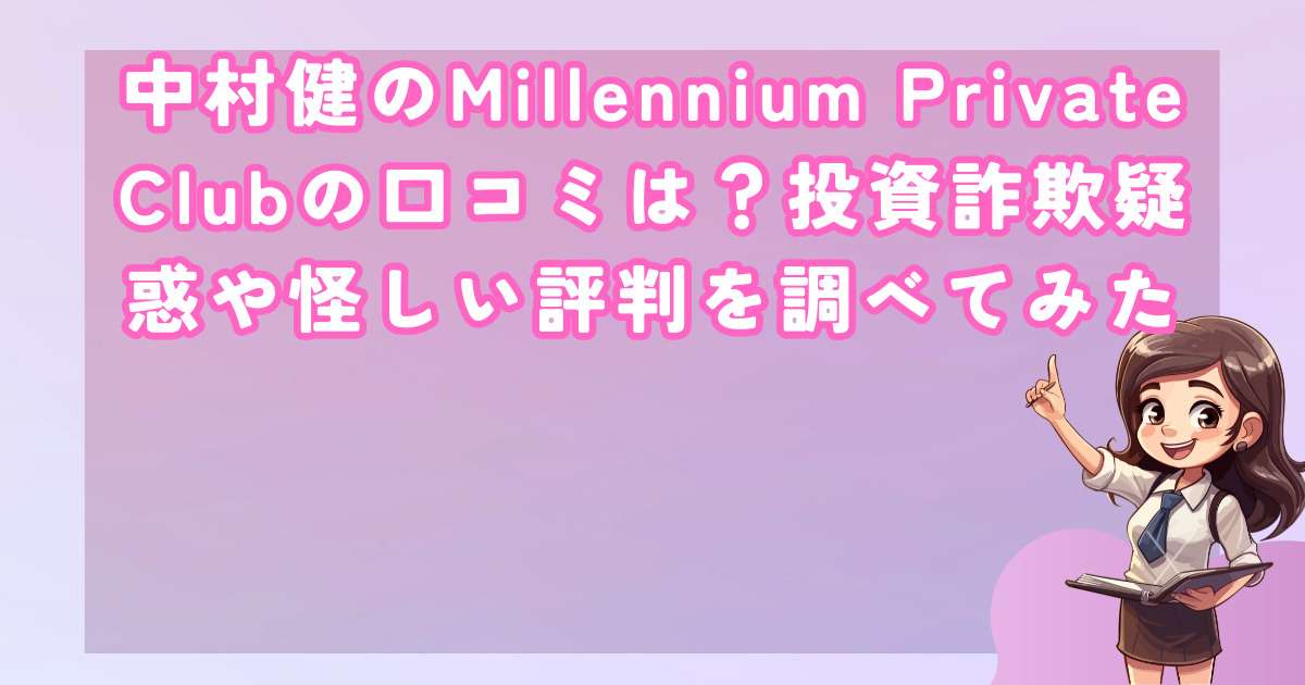 中村健のMillennium Private Clubについて、投資詐欺疑惑や怪しい評判が数多く報告されており、その実態を詳しく検証してまいります。