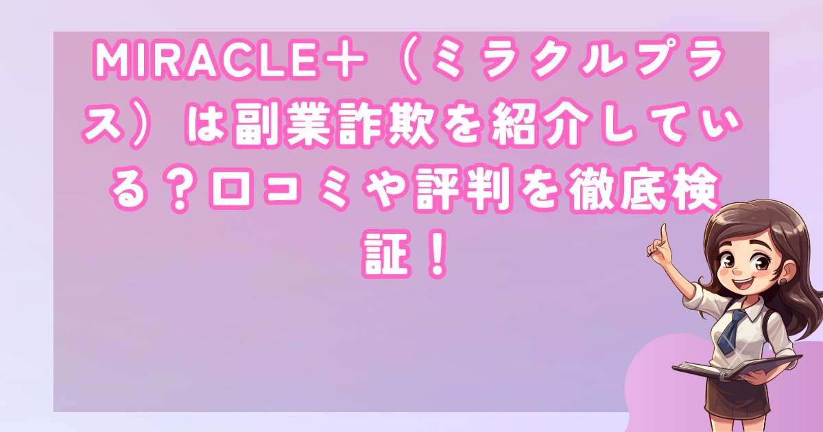 MIRACLE+(ミラクルプラス)については、運営会社の透明性や事業内容の明確性において疑問視する声が多く見られます。