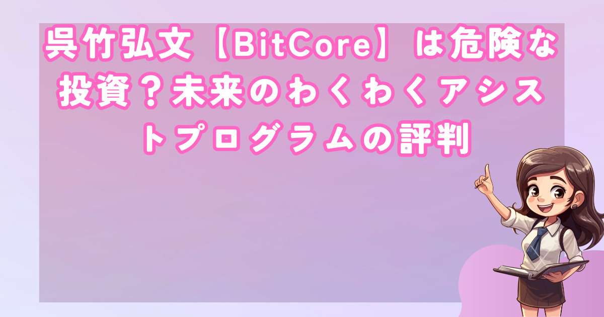 副業ブームに便乗した悪質な投資詐欺が急増する中、特に注意が必要なのが呉竹弘文氏が関与するとされる「BitCore・未来のわくわくアシストプログラム」です。